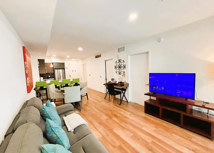 Situado no demasiado lejos del Estadio Dodger, este hotel también permite acceder a lugares deportivos como Crypto.com Arena, que está a 20 minutos andando del lugar. Situado a 650 metros de la estación de metro 7th Street Center, el Modern Apartment Rentals está a 1 km del Distrito de la Moda de LA.
